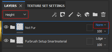 Make sure to set the blending method of the height channel to normal for the "Not Fur" folder